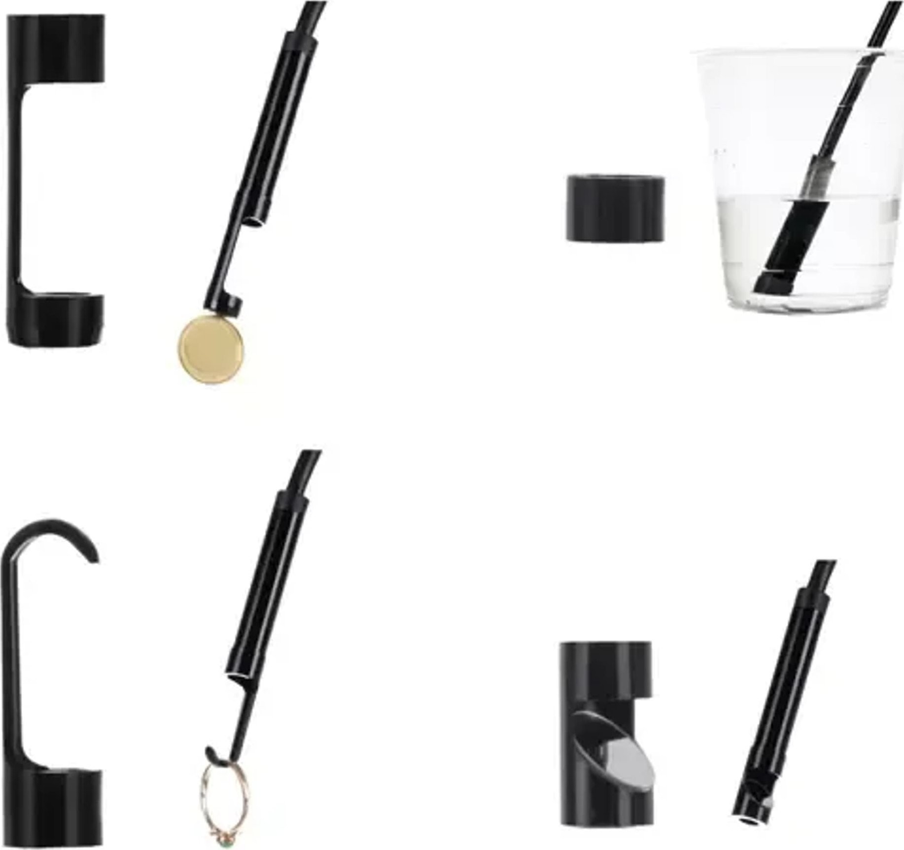 • 4 Aufsätze: Magnet, Spiegel, Haken, Blindstopfen