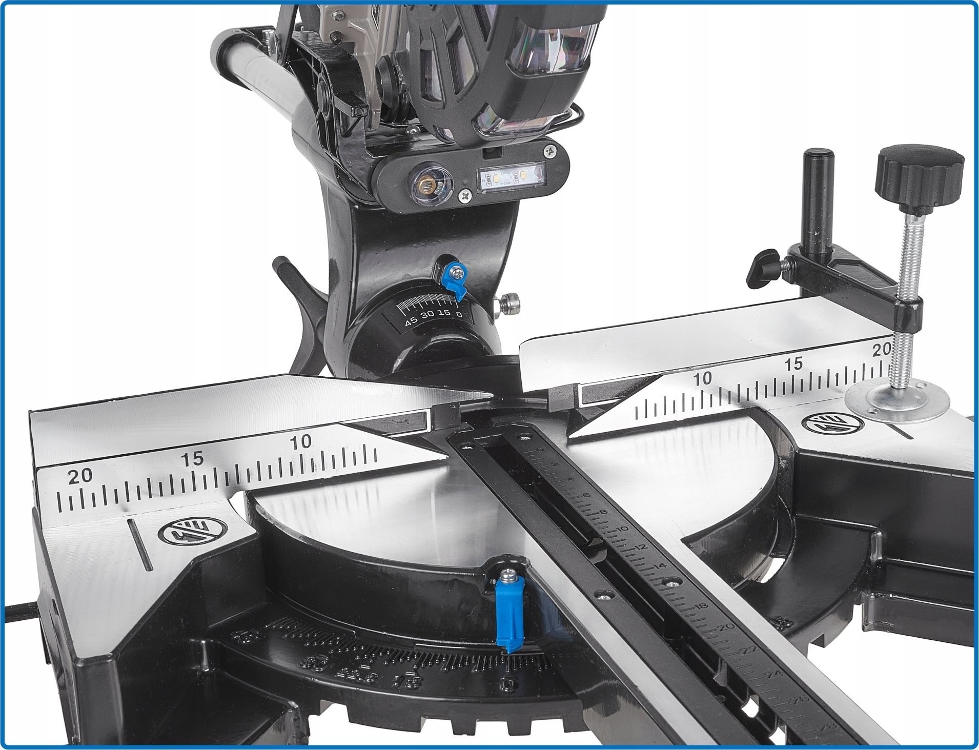 Die Schnittbreite bei einem Winkel von 90° beträgt 340 mm, bei einer Einstellung des Arbeitstisches auf 45° verringert sich die Schnittbreite auf 240 mm. Die maximale Schnitttiefe bei einem Winkel von 90° beträgt 90 mm; nach Änderung des Neigungswinkels der Sägeblatt auf 45° beträgt die Schnitttiefe 45 mm.