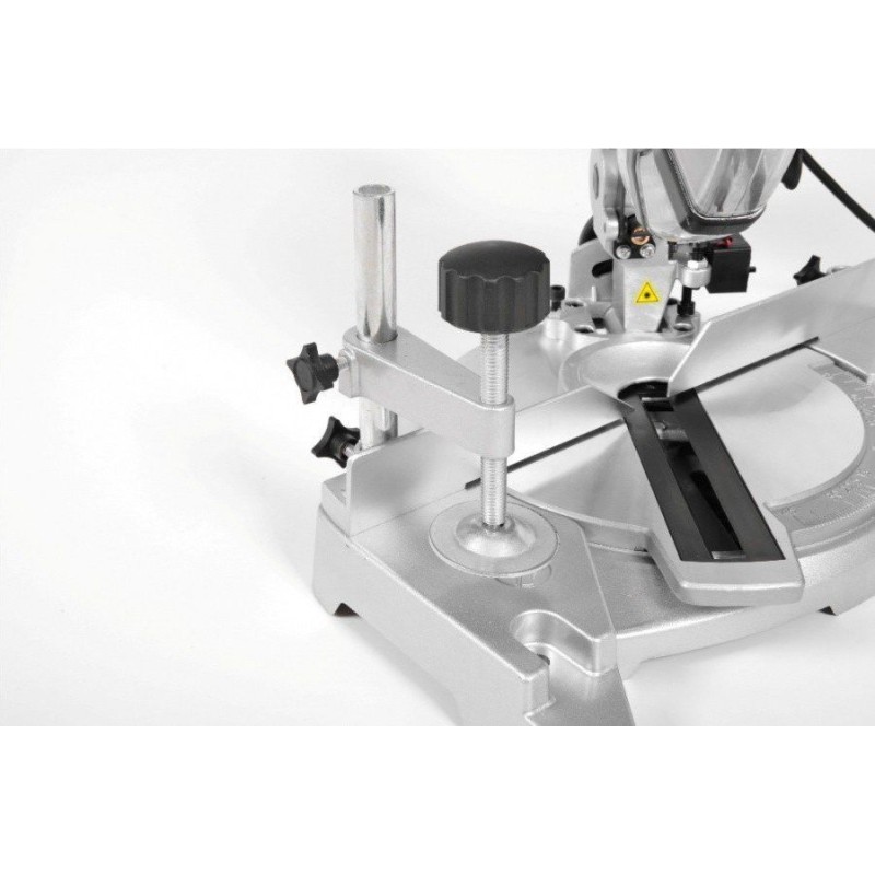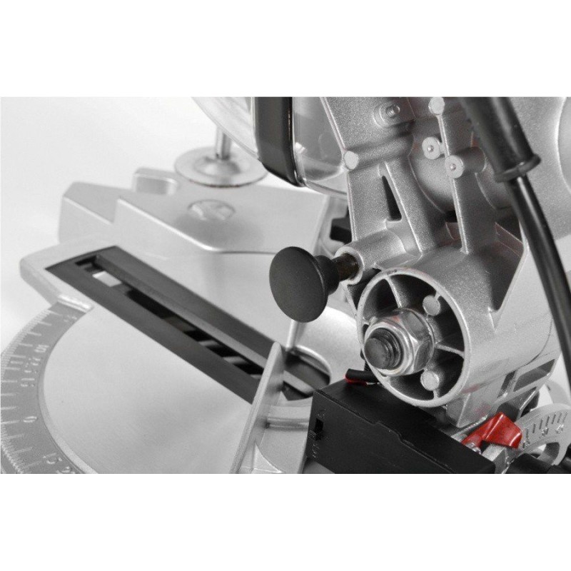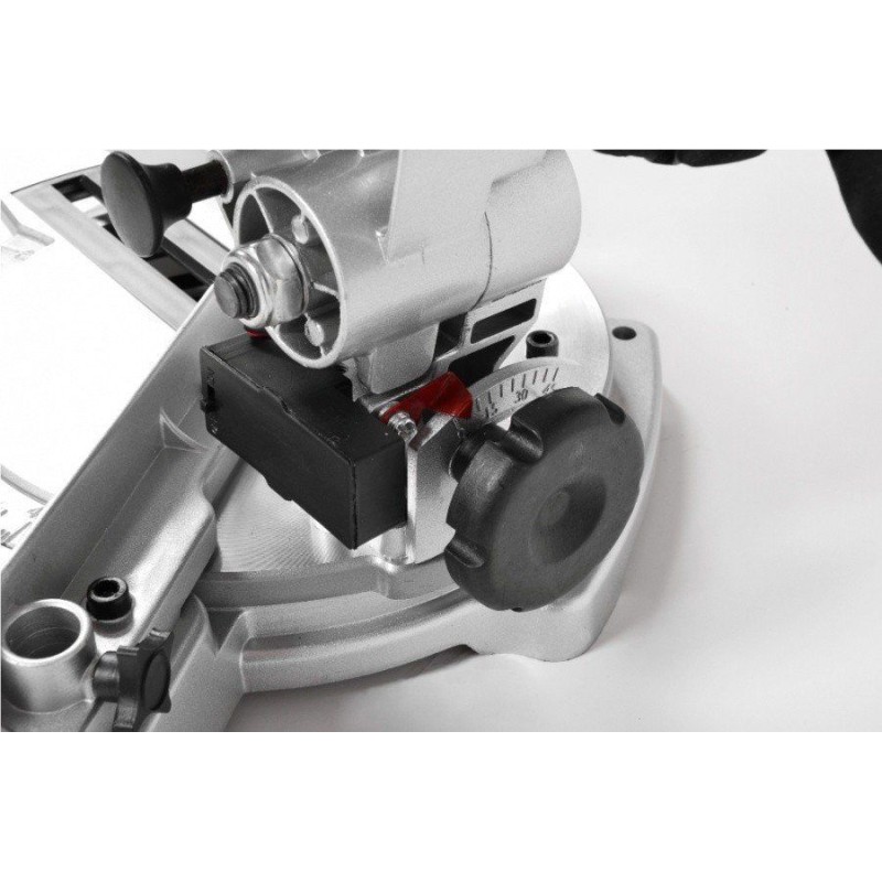 Der Sägetisch und die Verstellelemente sind präzise aus hochwertigem Gusseisen gefertigt. Leistungsstarker 1400-W-Motor – mit Bremse ausgestattet. Die integrierte Spindelarretierung erleichtert den Sägeblattwechsel. Transparente Sägeblattabdeckung. Die Tischverlängerung bietet eine solide Auflage für das zu bearbeitende Material. Nenn-Sägeblattdurchmesser 210 mm, Drehzahl 5000 U/min, Neigungsbereich -45°/ 0° / 45°.