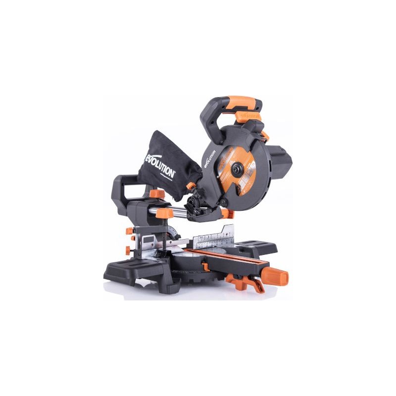 • Die neue Multifunktions-Gehrungssäge Evolution R185SMS+ kann viele Materialien schneiden, darunter: Stahlprofile, Aluminiumprofile, Kunststoffe, Holz und Holz mit Nägeln. Das verwendete Sägeblatt mit 20 Hartmetallzähnen und einer speziellen Schneidengeometrie sorgt für optimale Schnittbedingungen.