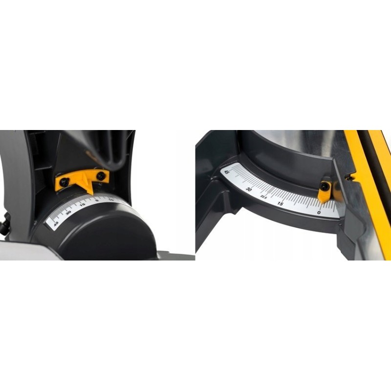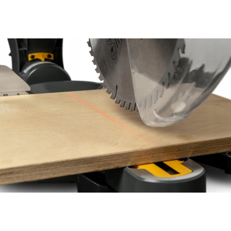 Die Säge findet sowohl in der Werkstatt als auch auf der Baustelle Anwendung. Sie ist mit einer gut lesbaren Winkelskala ausgestattet, die die Einstellung der entsprechenden Parameter erleichtert, sowie mit einem Laser, der die Schnittlinie präzise anzeigt.