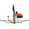 Die Säge ist mit einer Spannvorrichtung ausgestattet, die für die Stabilität des Werkstücks sorgt, sowie mit einem Spänebeutel, der für Ordnung während der Arbeit sorgt. Darüber hinaus sorgt das 2 m lange Netzkabel für Komfort und Bewegungsfreiheit.