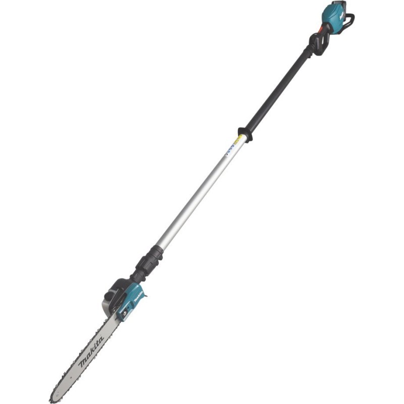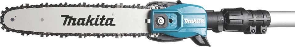 Die hervorragende Balance des UA004G dank der Platzierung des Motors im unteren Teil des Geräts verringert die Ermüdung des Benutzers und erleichtert das Manövrieren. Das Teleskoprohr ist werkzeuglos verstellbar, wodurch die Gesamtlänge des Geräts je nach Bedarf angepasst werden kann. Das Gerät ist mit einem Triggerschalter mit stufenloser Kettengeschwindigkeitsregelung sowie einem Hauptschalter mit automatischer Abschaltfunktion ausgestattet. Der versenkbare Drehknopf des Öltankdeckels minimiert das Risiko einer Beschädigung durch Äste. Der transparente Öltank zur Kettenschmierung erleichtert die Überprüfung des verbleibenden Ölstands im Tank. Die schlanke Bauweise des Schnittaufsatzes erleichtert das Manövrieren zwischen den Ästen, während der im Schnittaufsatz integrierte Haken das Entfernen abgeschnittener Äste vom Baum erleichtert. Die Akkuabdeckung kann auch als zusätzlicher Haltegriff dienen.