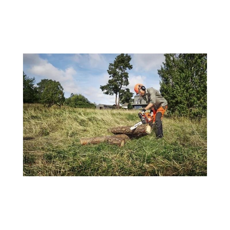 Die Säge 450 eII wiegt nur 5,1 kg und verfügt über einen Hubraum von 50,2 cm³, was eine Leistung von 2,4 kW (3,3 PS) gewährleistet. Das ergonomische Design mit dem hinteren Handgriff sorgt dafür, dass die Arbeit mit diesem Werkzeug auch bei längerem Einsatz komfortabel ist.