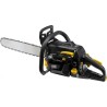 Die Motorsäge zeichnet sich durch eine Schienenlänge von 40 cm und ein Gewicht von 5,2 kg aus. Im Lieferumfang sind außerdem ein Montagewerkzeug und ein Behälter zur Zubereitung des Kraftstoffgemischs enthalten.
