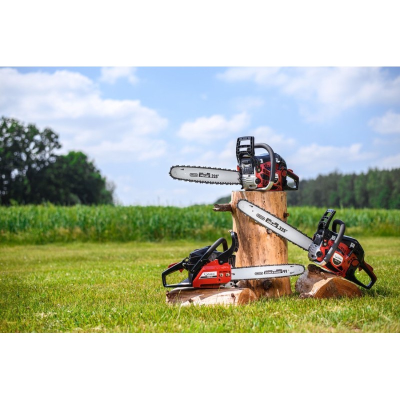 Die Benzinkettensäge Cedrus PS40-16T eignet sich zur Vorbereitung von Brennholz, zum Zurückschneiden von Ästen im Obstgarten oder zur Baumpflege im Wald. Ausgestattet mit einem zuverlässigen Zweitaktmotor mit einer Leistung von 2 PS und einem Hubraum von 40,1 cm³ sowie OREGON-Schienen und -Ketten.