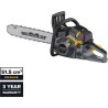 Die lange (40 cm) Führungsschiene und die 1,3 mm starke Kette ermöglichen ein sehr effizientes Schneiden von Holz. Der große Kraftstofftank (0,55 Liter) ermöglicht längeres Arbeiten ohne Unterbrechungen zum Nachfüllen. Die integrierte Kraftstoffpumpe und der separate Öltank ermöglichen eine einfache Vorbereitung der Säge für den Einsatz. Leicht (6,5 kg), mit rutschfestem Griff, ergonomisch gestaltetes Werkzeug, das eine komfortable und sichere Handhabung gewährleistet. Das Werkzeug verfügt über eine 36-monatige Garantie.