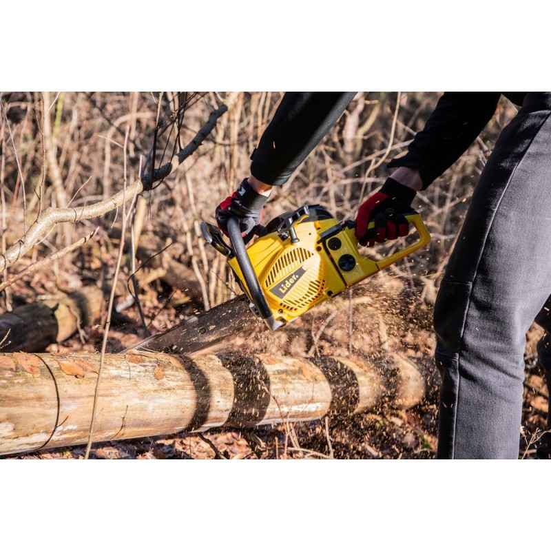 Entscheiden Sie sich für eine Benzinsäge und genießen Sie die schnelle und effiziente Arbeitsweise des Geräts. Der Vorteil von Benzinsägen liegt vor allem in ihrer deutlich höheren Leistung im Vergleich zu Elektrowerkzeugen, weshalb diese Geräte meist für besonders schwere Arbeiten eingesetzt werden. Dank ihrer soliden Bauweise ist die Säge äußerst robust – Überlastung und mechanische Beschädigungen können ihr nichts anhaben. Ein weiterer Vorteil der Benzinsäge ist, dass wir sie überall einsetzen können, ohne Einschränkungen durch die Kabellänge. Aufgrund ihrer Mobilität ist sie die ideale Wahl für Ausflüge in den Wald.