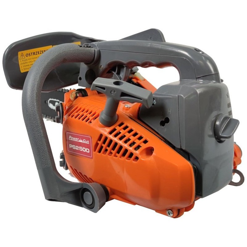 Benzinkettensäge PS2500 PowerCut Einhand-Benzinkettensäge – „Astschneider“ Empfohlen zum Schneiden von Ästen – dank ihres geringen Gewichts und ihrer kompakten Bauweise eignet sie sich hervorragend für Arbeiten in der Höhe. Sie ist sehr handlich