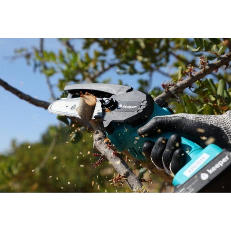 Kettensäge KEEPER KP6 – Die akkubetriebene Elektrokettensäge Keeper KP6 ermöglicht das Schneiden von Ästen mit einem Durchmesser von bis zu 80 mm und ist damit der ideale Begleiter für den Pflegeschnitt von Obstbäumen und Ziersträuchern.