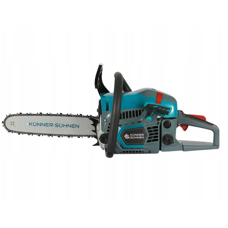 Die Kettensäge wurde mit Blick auf den Bedienkomfort entwickelt. Das ergonomische Design und das Antivibrationssystem sorgen dafür, dass die Arbeit mit dem Werkzeug angenehm und weniger anstrengend ist. Die Gummibeschichtung am Griff gewährleistet einen sicheren Halt, was die Sicherheit bei der Arbeit erhöht.
