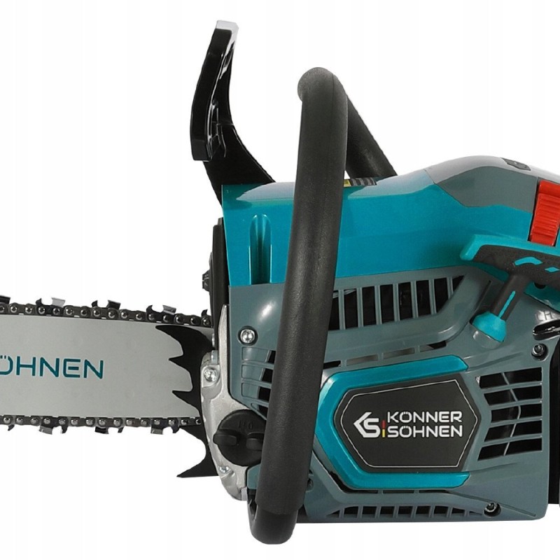 Sicherheit ist bei der Arbeit mit motorbetriebenen Werkzeugen von entscheidender Bedeutung. Die Kettensäge von Künner & Söhnen ist mit einer Trägheitsbremse ausgestattet, die die Kette im Falle eines Rückschlags sofort stoppt. Darüber hinaus verhindern der Kettenhalter und der Drosselklappen-Sperrknopf das Risiko eines versehentlichen Starts des Geräts.