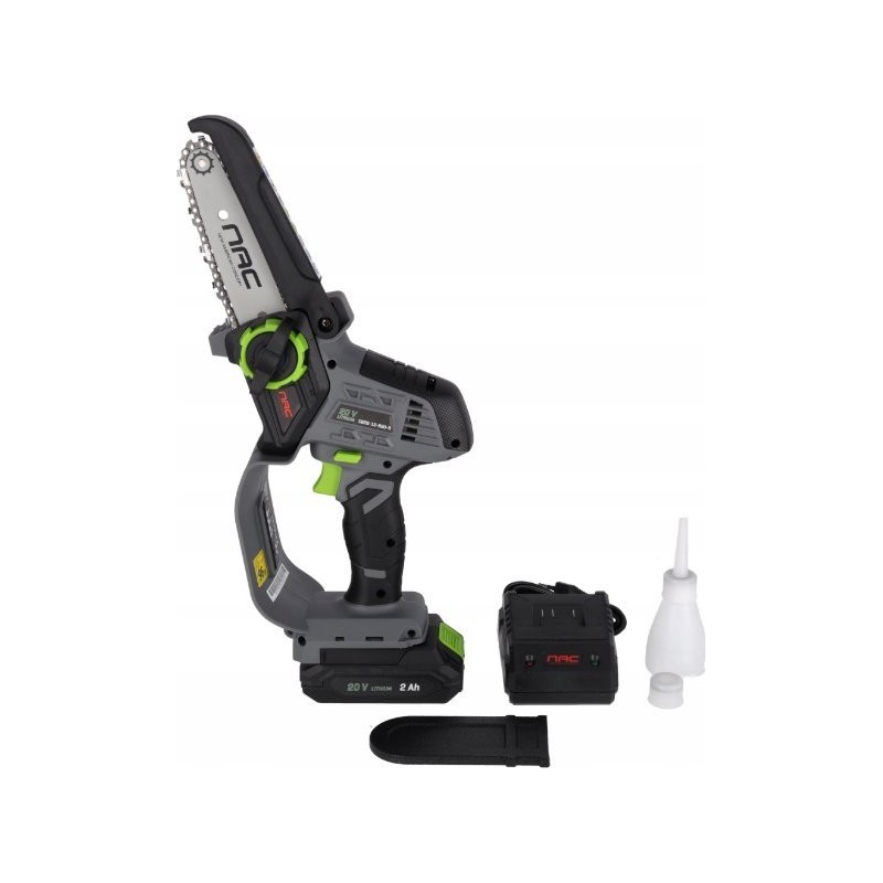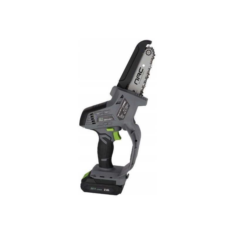 Die Mini-Kettensäge NAC CB20-12-B20-S ist ein Akku-Gerät, das kompakte Abmessungen mit beeindruckender Leistung verbindet und sich ideal zum Schneiden von Ästen und kleinem Holz eignet. Dank des 20-V-Li-Ion-Akkus mit einer Kapazität von 2 Ah ist die Bedienung äußerst komfortabel, da Sie sich keine Gedanken über Kabel machen müssen. Das macht sie zur perfekten Wahl für Arbeiten im Garten und rund ums Haus.