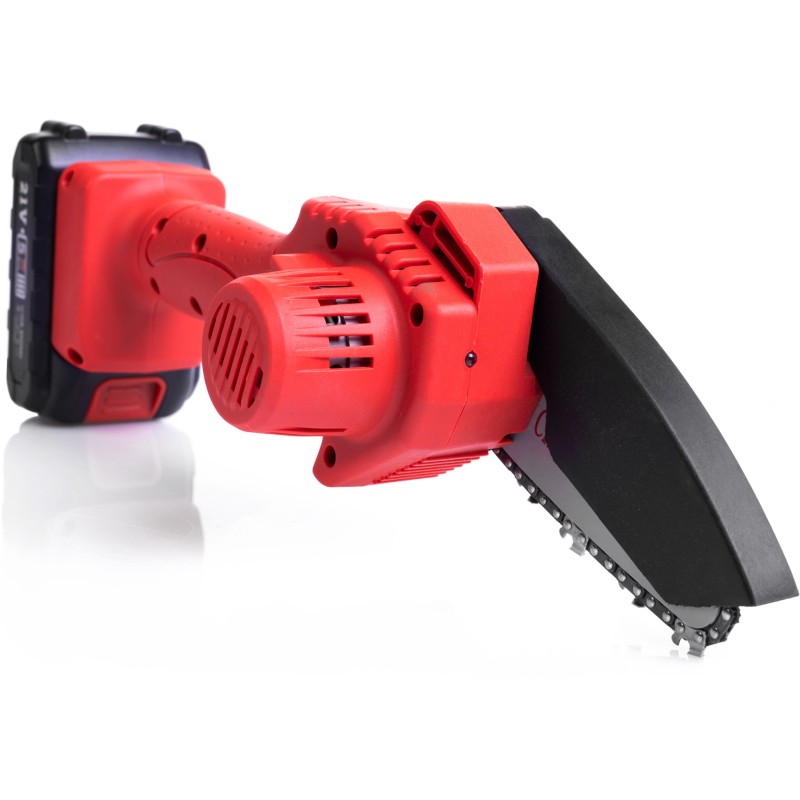 Der Akku mit einer Spannung von 21 V und einer Kapazität von 1,5 Ah sorgt für große Bewegungsfreiheit bei der Arbeit. Da keine Kabel erforderlich sind, eignet sich die Säge ideal für den Einsatz an Orten, an denen der Zugang zu einer Stromquelle eingeschränkt ist.