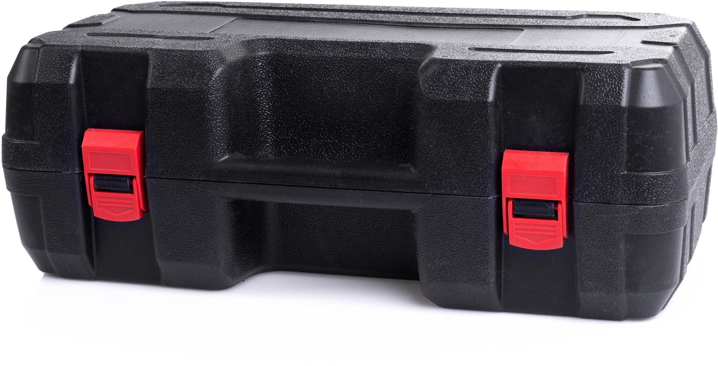 Das Set enthält alle notwendigen Zubehörteile, damit Sie sofort nach dem Kauf mit der Arbeit beginnen können. Es umfasst die Kettensäge, zwei Akkus, ein Ladegerät, zwei Ketten sowie Führungsschienen – alles verpackt in einem praktischen Koffer, der die Aufbewahrung und den Transport erleichtert.
