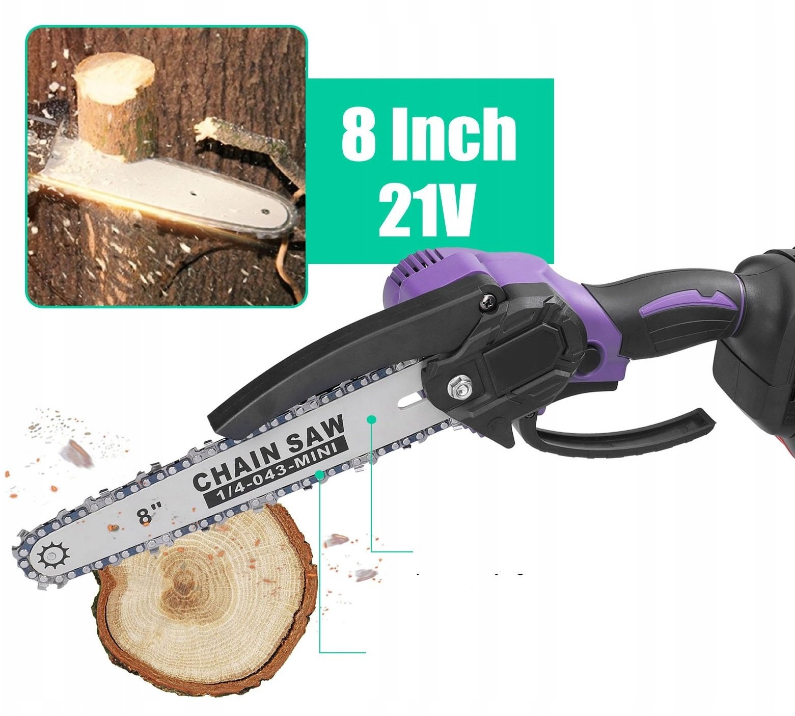 8-Zoll-Kettensäge – Akku-Kettensäge mit 2 Akkus