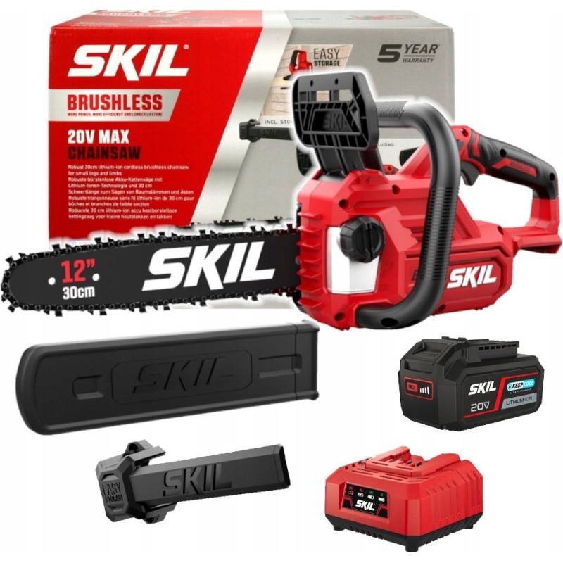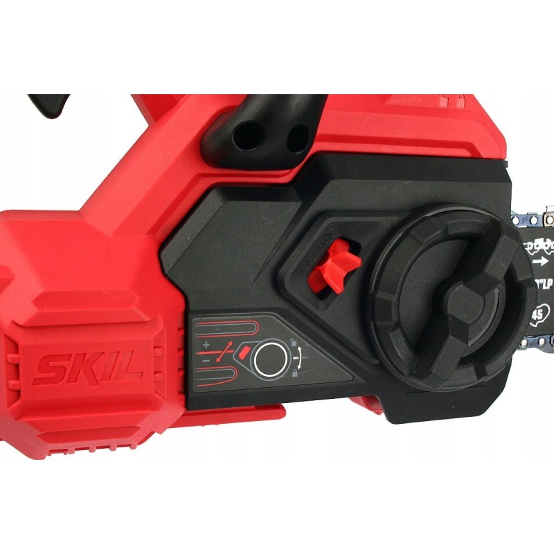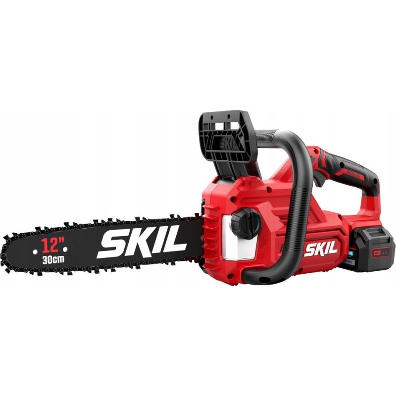 Die Akku-Kettensäge von Skil mit einer 30-cm-Schiene ist ein modernes Werkzeug aus der RED Line-Serie, das Effizienz und Bedienkomfort vereint. Dank innovativer Lösungen eignet sich dieses Gerät ideal zum Schneiden kleiner Holzstämme und Äste, was es zur perfekten Wahl für Arbeiten im Garten und auf dem Grundstück macht.