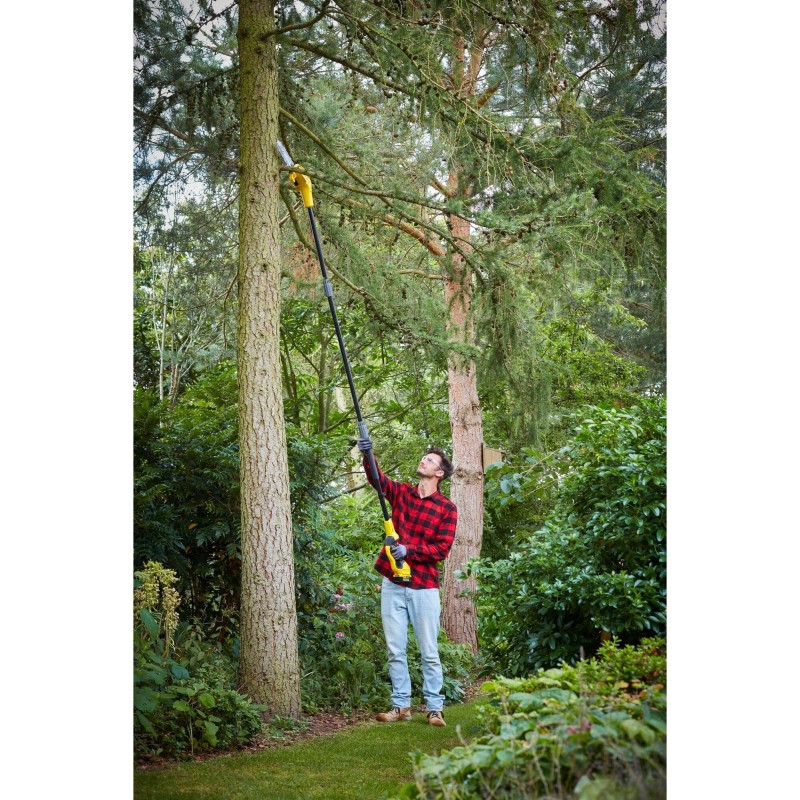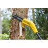 Die Stanley-Kettensäge am Ausleger SFMCPS620B-XJ ist ein sehr nützliches Gerät für Arbeiten, bei denen viele dickere Äste in großer Höhe geschnitten werden müssen. Der bis zu 4,5 m lange Ausleger ermöglicht das bequeme Beschneiden von Ästen ohne den Einsatz zusätzlicher Gartengeräte wie Podeste oder Leitern. Vom Boden aus kann der Benutzer die Schnitte mühelos ausführen. Die Säge verfügt über eine 20 cm lange Führungsschiene, die das Schneiden erheblich erleichtert. Die Sägekette benötigt keine Schmierpumpe und verfügt über eine Bremse, die die Kette in weniger als 1 Sekunde stoppt. Der Sägekopf ist abgewinkelt, was den Zugang zu schwer erreichbaren Stellen erleichtert. Nach getaner Arbeit kann die Säge Stanley SFMCPS620B-XJ dank eines im Gehäuse integrierten Hakens, der mit dem Wandsystem STANLEY® Versatrack kompatibel ist, aufgehängt werden.