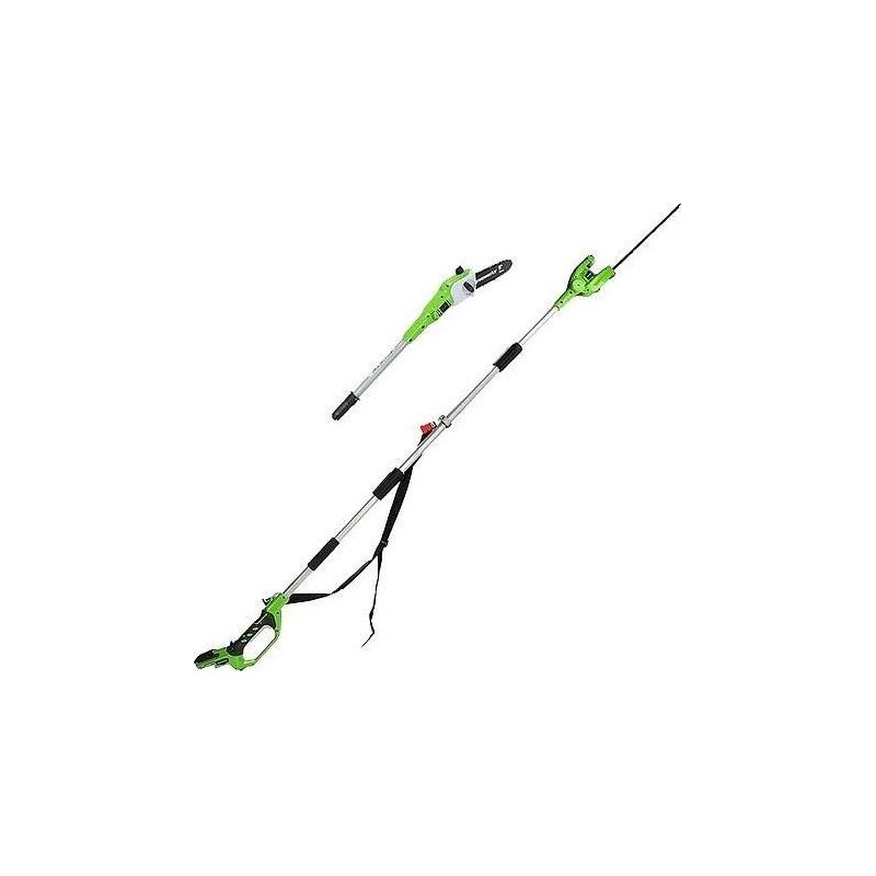 Die klappbare Konstruktion des Geräts ermöglicht eine Längenverstellung von 155 bis 205 cm, was das Schneiden in Höhen von bis zu 4 Metern über dem Boden erleichtert. Die Kettensäge ist mit einer Stahlschiene und einer Kette der Marke Oregon ausgestattet. Das relativ geringe Gewicht von 3,2 kg ist ein großer Vorteil, der die Arbeit erheblich erleichtert und beschleunigt. Geringe Geräuschentwicklung, geringe Vibrationen und einfache Handhabung sind nur weitere Pluspunkte.