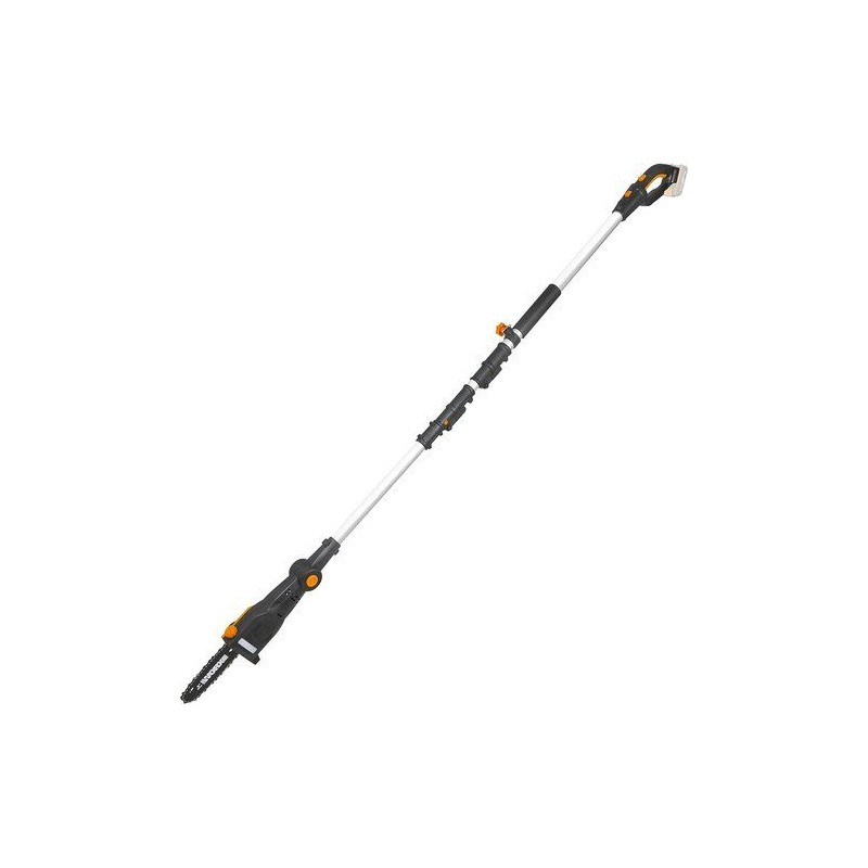Die Akku-Hochentaster WORX WG349E wurde mit einer ausziehbaren Stange entwickelt, die bis zu 4,0 Meter reicht, was dir Mühe und Unsicherheit beim Arbeiten auf einer Leiter erspart. Ausgestattet mit einem voll verstellbaren Schneidkopf und einem drehbaren hinteren Griff ermöglicht sie vielseitiges Beschneiden und das Erreichen schwer zugänglicher Äste, während gleichzeitig die Kontrolle vom Boden aus verbessert wird. Die Astsäge WG349E.9 wurde zudem mit der von WORX patentierten automatischen Kettenspannungstechnologie entwickelt, die stets für eine optimale Kettenspannung sorgt.