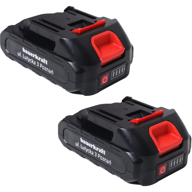 • 2 Li-Ion-Akkus, 2,0 Ah, 21 V, mit LED-Ladezustandsanzeige