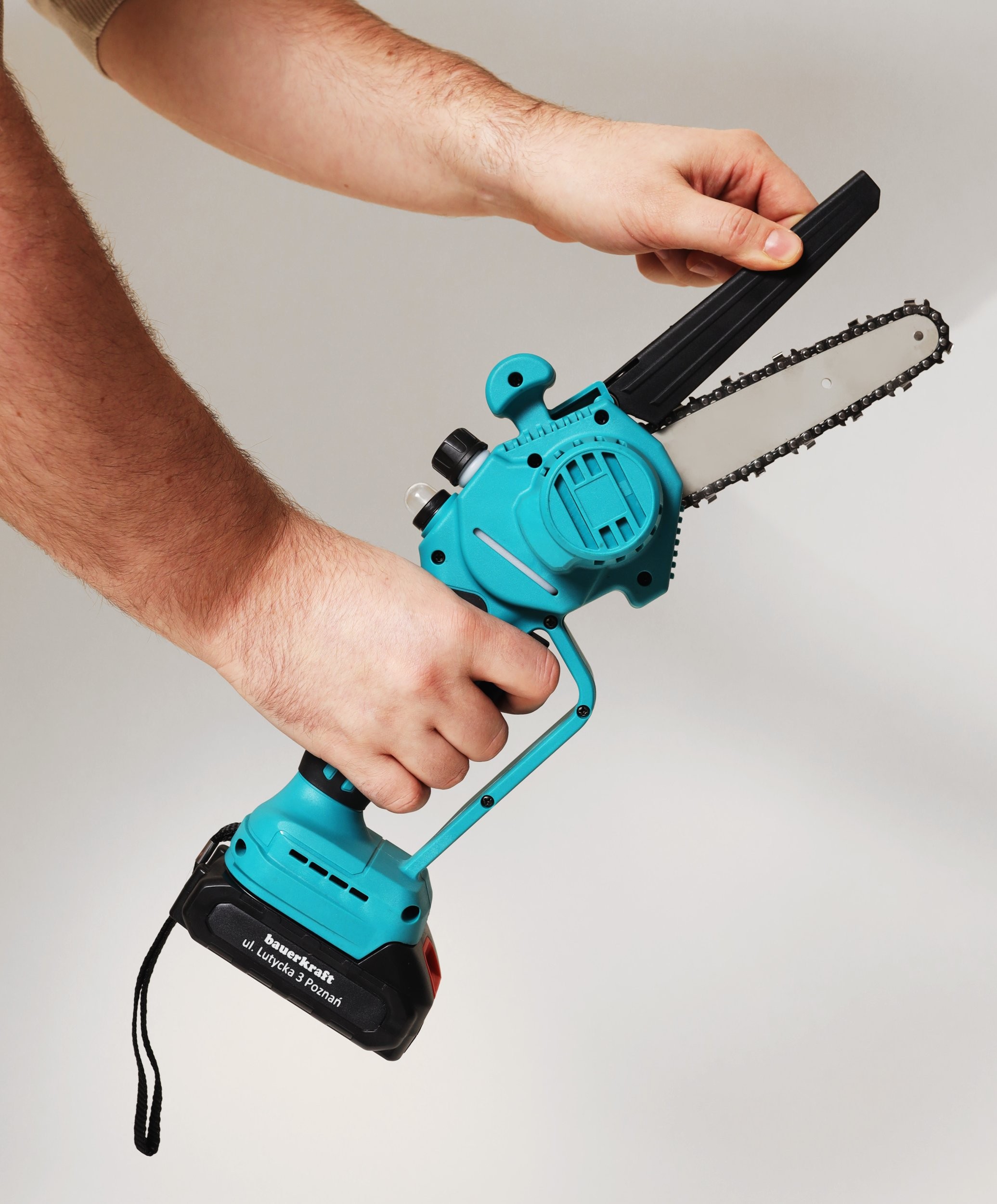 Die Kettensäge mit bürstenlosem Motor garantiert Zuverlässigkeit und Langlebigkeit, macht den Austausch von Bürsten überflüssig und ermöglicht so eine längere Betriebszeit bei voller Leistungsfähigkeit des Geräts. Sie verbraucht weniger Energie, wodurch die Akkuleistung noch effizienter genutzt wird. Das Ganze ist in einem kompakten Koffer verpackt, in dem das zusammengefaltete Werkzeug samt Zubehör Platz findet. Ein großer Vorteil der Kettensäge ist das Spannen der Kette über einen Drehknopf, ganz ohne Werkzeug.
