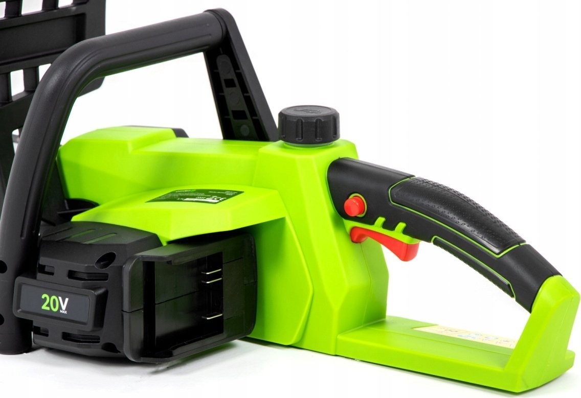 Die Akku-Kettensäge AP25 ist ein Modell, das mit einem 20-V-Motor betrieben wird. Ein sehr wichtiger Faktor, der viel über die hohe Qualität der Akku-Kettensäge AP25 aussagt, ist die Verwendung einer Führungsschiene und einer Kette der renommierten, weltweit bekannten Marke Oregon. Die Schiene hat eine Länge von 25 cm, die Kette eine Stärke von 3/8″ 1,1 mm 40E. Das Modell ist mit einer Ölstandsanzeige sowie einer automatischen Kettenschmierung und einem Schnellspannmechanismus für die Kette ausgestattet. Die Arbeit mit dem Gerät wird durch einen weichen Griff erleichtert, dank dem selbst ein längerer Einsatz kein großes Problem darstellt. Dazu trägt auch das geringe Gewicht des Geräts von nur 3 kg bei.