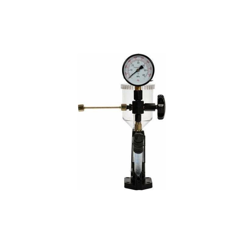 Das große Manometer ermöglicht Messungen mit der Genauigkeit, die von den Empfehlungen und Normen der Hersteller von Kraftstoffanlagen gefordert wird. Der Einspritzdüsen-Druckprüfer eignet sich für Messungen an Diesel-Pkw und -Lkw. Der Prüfer kann an einer Werkbank befestigt werden.