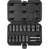 • 1/2"-Steckschlüsseleinsätze für beschädigte Muttern. Im Set enthalten: 8, 10, 11, 12, 13, 14, 15, 16, 17, 19, 21, 22, 24, 27 mm. 2 Ausdreher zum Entfernen von Schrauben aus den Steckschlüsseleinsätzen. Kann mit Schlagschraubern verwendet werden. Die innere Spirale sorgt für ein selbstständiges Festziehen an der beschädigten Schraube/Mutter und ermöglicht so ein sicheres Lösen.