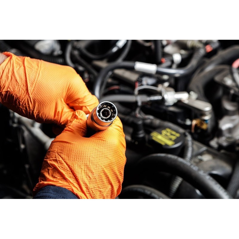 • Sie bieten größere Anwendungsmöglichkeiten und lassen sich auch an schwer zugänglichen Stellen einsetzen – beispielsweise dort, wo das Gewinde deutlich hervorsteht und eine Mutter gelöst werden muss, oder an Stoßdämpfern, wo der Bolzen überprüft werden muss.