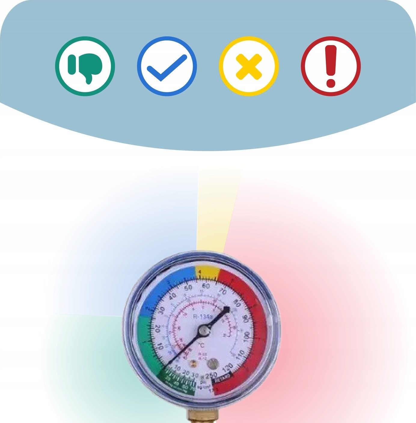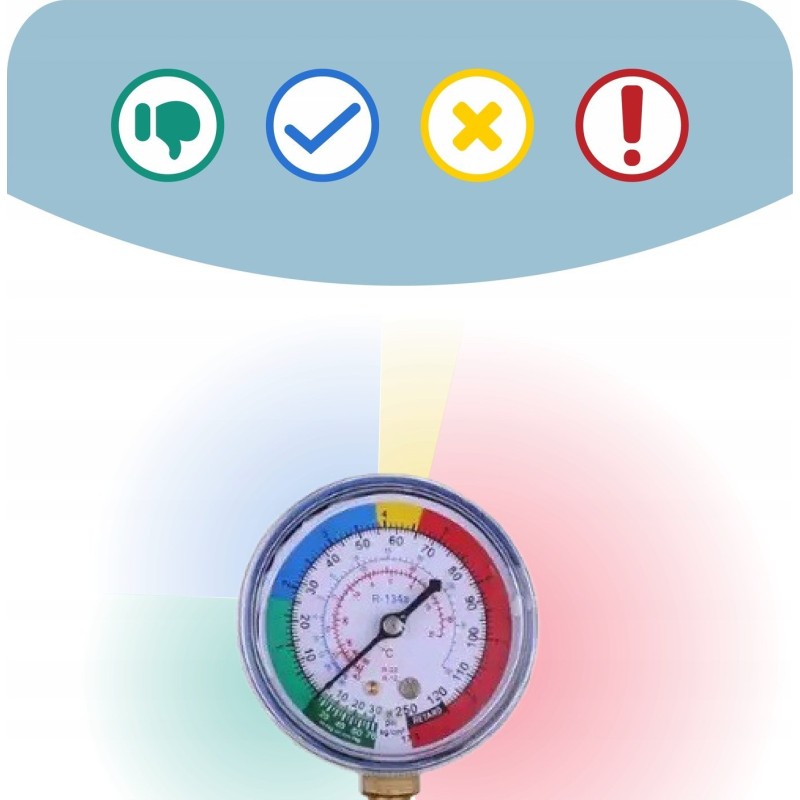 Die Farben auf dem Manometer helfen dir dabei, den richtigen Druck im Kühlsystem zu erreichen!
