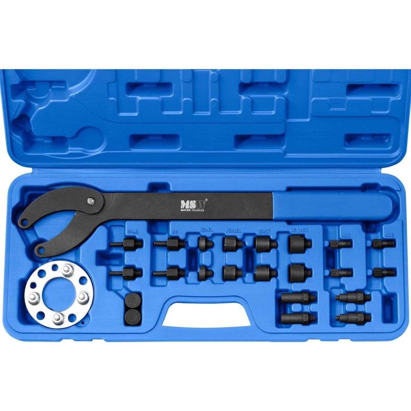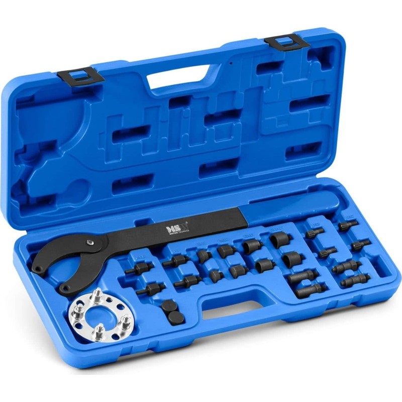10061759 Die Nockenwellenarretierung der Marke MSW eignet sich für verschiedene Fahrzeugmodelle der Marken Audi , Seat , VW und Skoda sowie für andere Fahrzeuge mit Common-Rail-Einspritzung (1.2, 1.4, 1.6, 2.0 TDI CR). Dieses professionelle Werkzeug ermöglicht den Austausch von Nockenwelle, Zahnriemen, Ölpumpe oder Schwingungsdämpfer. Außerdem arretiert es die Kurbelwelle zuverlässig. Das Set eignet sich sowohl für Fachwerkstätten als auch für private Garagen. Der Austausch der Nockenwelle, des Zahnriemens oder der Ölpumpe ohne Beschädigung der Teile erfordert ein Spezialwerkzeug. Das Set der Marke MSW ist die Lösung für eine breite Palette von Fahrzeugmodellen. Das 22-teilige Set enthält alles, was für den schonenden Austausch der Teile erforderlich ist. Die Werkzeuge sind aus strapazierfähigem Material gefertigt und gewährleisten somit eine lange Lebensdauer. Die Nockenwellenarretierung befindet sich in einem Kunststoffkoffer, der über geformte Aussparungen für jedes Element verfügt. Ein praktischer Griff erleichtert den bequemen Transport des Sets.
