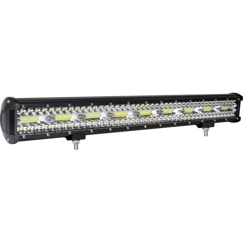 Die robuste Panel-Leuchte Modell AWL29 eignet sich unter anderem für den Einsatz in Geländewagen, Land- und Baumaschinen, Quads, Booten oder als Zusatzbeleuchtung in Lastkraftwagen. EIGENSCHAFTEN: COMBO-Panel - strahlt diffuses und gebündeltes Licht aus verstellbare Montagehalterungen aus Edelstahl großer Eingangsspannungsbereich robustes, wasserdichtes Aluminiumgehäuse die Schutzart IP67 ermöglicht den Einsatz der Leuchte unter rauen Witterungsbedingungen geringer Stromverbrauch im Verhältnis zur Lichtleistung CE- und RoHS-zertifiziert TECHNISCHE PARAMETER : Eingangsspannung: DC 9–36 V Anzahl der LEDs: 160 Epistar-LEDs Max. Leistung: 540 W Max. Lichtleistung: 54.000 lm Lichtfarbe: 6.000–6.500 K (weiß) Schutzart: IP67 Betriebstemperatur: -40 °C bis +65 °C EMV-Zulassung: E9, ECE R10 Modell: AWL29 ABMESSUNGEN: (L x B x H) 650 x 74 mm LIEFERUMFANG: Leuchte, Halterung und Befestigungsschrauben