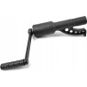 Befestigen Sie die Kurbel und den Steckschlüsselaufsatz und setzen Sie den Schraubenschlüssel am Rad an. Arretieren Sie den Anschlagfuß an der nächstgelegenen Schraube – drehen Sie dabei im Uhrzeigersinn. Beginnen Sie anschließend mit dem Lösen mithilfe der Kurbel.