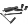 Nachdem Sie die Radbolzen mit dem Planetenschlüssel gelöst und das Fahrzeug mit einem Wagenheber angehoben haben, verbinden Sie einfach die Kurbel mit der im Set enthaltenen Verlängerung und dem Steckschlüsselaufsatz. Anschließend können Sie die gelösten Muttern/Schrauben schneller herausdrehen – auf diese Weise erhalten Sie eine Konfiguration mit einem Übersetzungsverhältnis von 1:1.