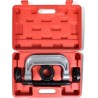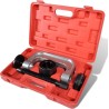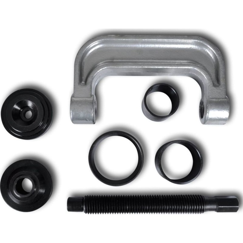 Das Set umfasst eine robuste Presse mit C-förmigem Rahmen, Hülsen sowie Adapter für die Montage und Demontage. Alle Werkzeuge sind in einem robusten Koffer verpackt, der den Transport erleichtert.