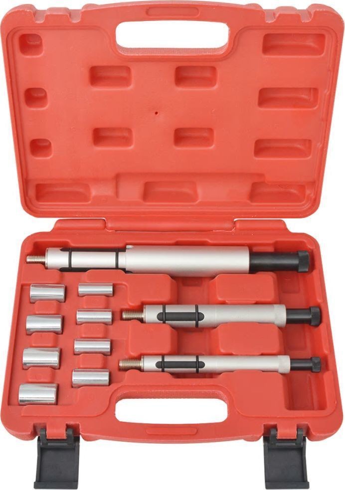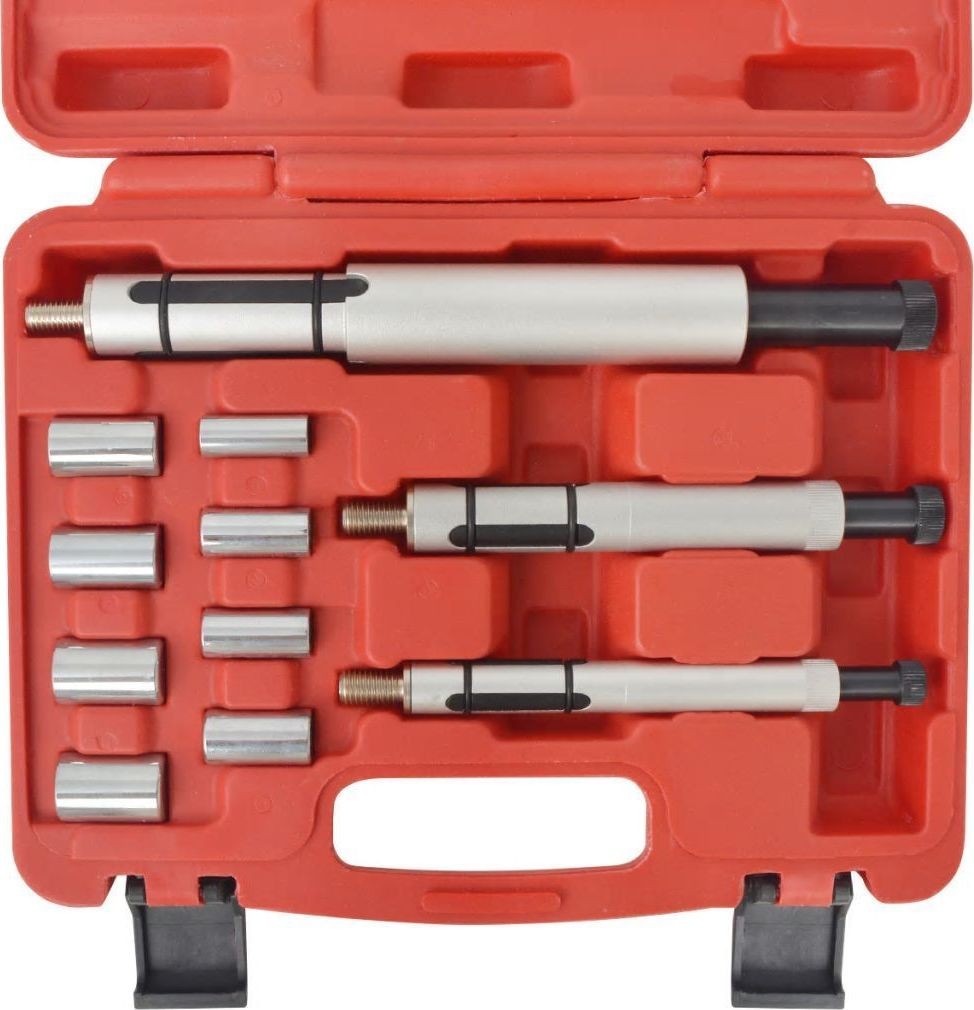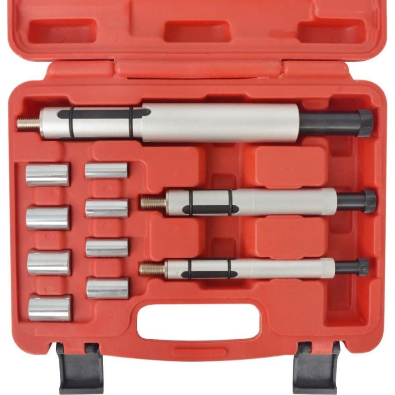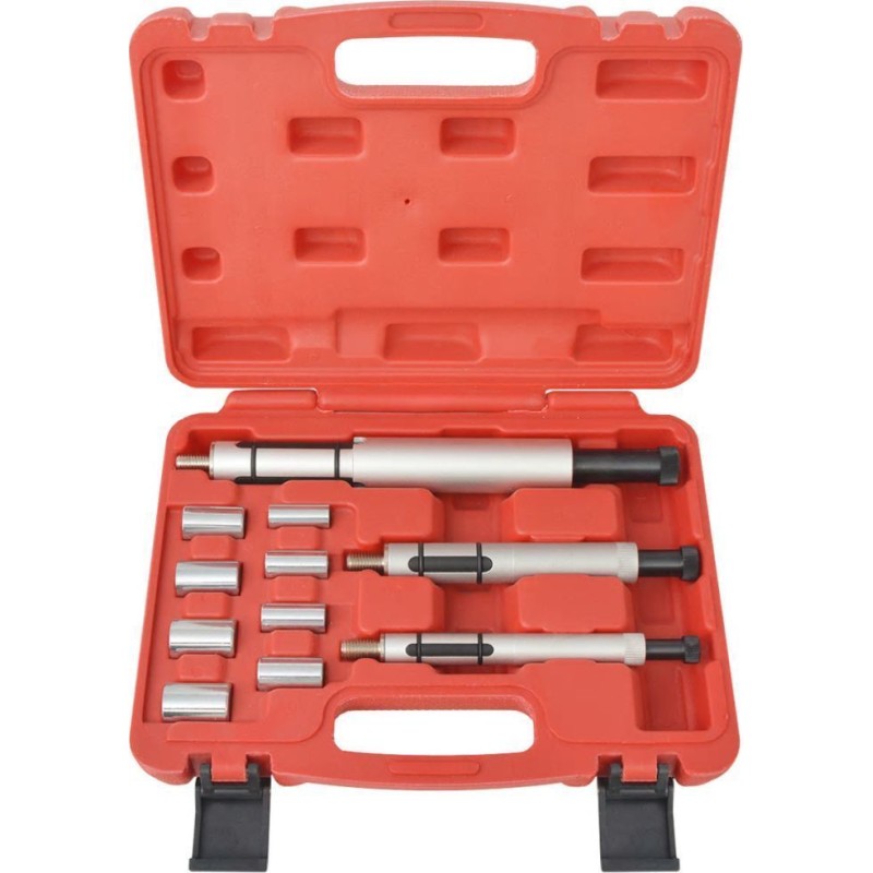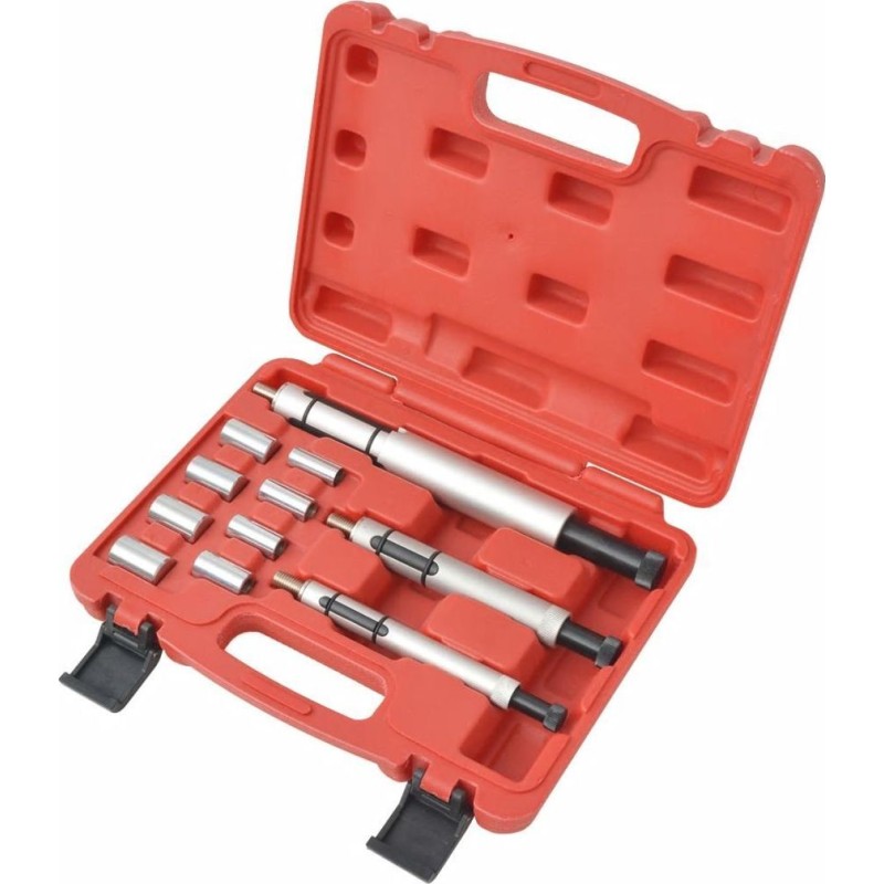 Das aus hochwertigen Materialien gefertigte Set zeichnet sich durch eine lange Lebensdauer aus. Das Werkzeugset enthält 8 Stahllager und 3 Spreizdorne. Die Werkzeuge sind in einem speziell geformten Koffer verpackt, um eine einfache Aufbewahrung und den Transport zu gewährleisten.