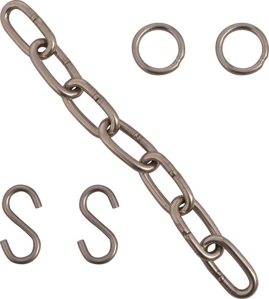 Das Set enthält 10 Stangen, 1 Pumpe, 1 Kette, 2 S-förmige Haken und 2 Ringe. Es wird in einer Tasche geliefert, die den Transport und die Aufbewahrung erleichtert.