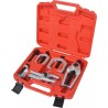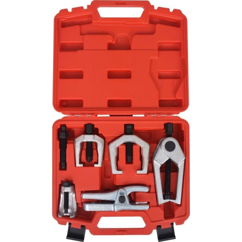 Der Kugelgelenk-Abzieher ist eine Presse, die im Gegensatz zu herkömmlichen Spreizgabeln das Abziehen des Kugelgelenks ermöglicht, ohne die Schutzkappen oder andere Teile zu beschädigen. Das komplette Set wird in einem robusten Koffer geliefert.