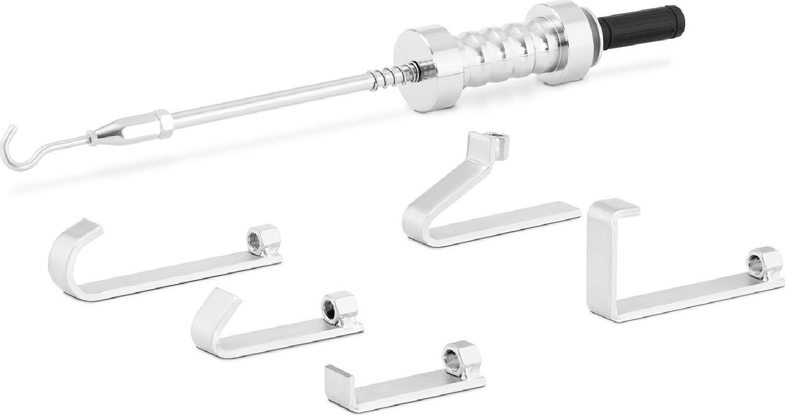 Der Trägheitshammer der Marke MSW eignet sich nicht nur für die Karosseriewerkstatt, sondern auch für die Garage eines Autoliebhabers. Die hohe Effizienz des Werkzeugs ist unter anderem auf die Länge von 73 cm und den großen Griff zurückzuführen. Diese garantieren eine hohe Ausziehkraft, die beim Entfernen von Dellen nach Hagelschlag oder Türschlägen nützlich ist. Im Set findest du 5 Haken , die du für verschiedene Arten von Dellen verwenden kannst.