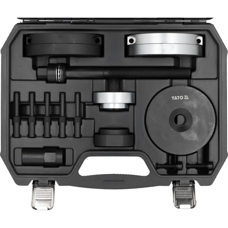 Das Set enthält 16 Teile, was den YT.BEARING AND HUB PULLER zu einem vielseitigen Werkzeug für verschiedene Anwendungen macht. Dank dieses umfangreichen Sets hat der Anwender die Möglichkeit, das Werkzeug an seine Bedürfnisse anzupassen, was dessen Funktionalität erhöht.