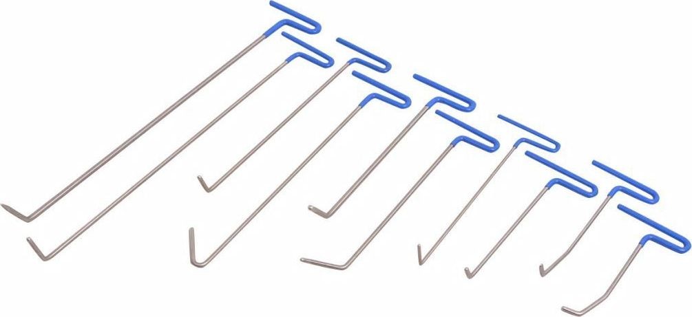 Mit unserem Werkzeugset zur Ausbeultechnik aus Edelstahl können Sie Dellen am Auto beseitigen, ohne den Lack zu beschädigen. Im Gegensatz zu anderen Methoden verursacht der Einsatz dieser Werkzeuge keine Schäden am Fahrzeug. Die Dellen werden von der Rückseite der Karosserieteile entfernt, sodass kein Schleifen, Spachteln und Neulackieren erforderlich ist. Es müssen auch keine Karosserieteile ausgetauscht oder neu lackiert werden, was Ihnen Probleme bei der Farbanpassung erspart. Das Ausbeulen von Dellen ist ein heikler Vorgang und erfordert die besten Werkzeuge – dieses Set ist daher eine hervorragende Wahl.