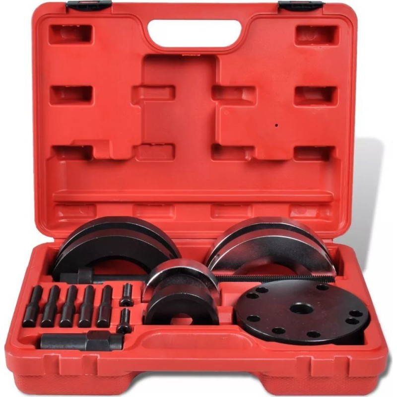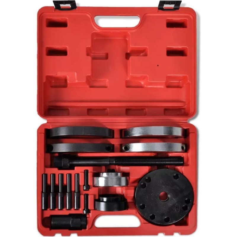 Das Set eignet sich für den Ein- und Ausbau von Lagern der zweiten Generation in Fahrzeugen beliebter Marken wie VW, Audi, Skoda oder Seat. Es spart bei Reparaturarbeiten viel Zeit und Kraft. Zum Lieferumfang gehören auch Montageflansche. Der Sicherungsring fixiert das Lager im Gehäuse. Das gesamte Set ist in einem praktischen und robusten Koffer untergebracht.