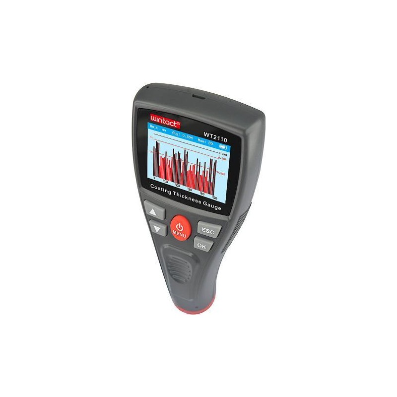Das WT2100 ist ein professionelles Gerät zur schnellen und präzisen Messung der Schichtdicke nichtmagnetischer Beschichtungen auf metallischen Untergründen. Das Produkt findet breite Anwendung in der chemischen und metallurgischen Industrie, bei der Qualitätskontrolle von Waren, insbesondere in der Automobilindustrie sowie in vielen anderen Bereichen. Das Messgerät ist mit einem hochauflösenden Farbdisplay (HD).