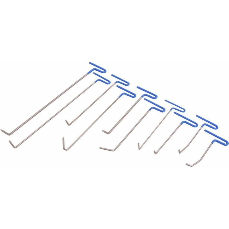 Mit unserem Werkzeugset zur Ausbeultechnik aus Edelstahl können Sie Dellen am Auto beseitigen, ohne den Lack zu beschädigen. Im Gegensatz zu anderen Methoden verursacht der Einsatz dieser Werkzeuge keine Schäden am Fahrzeug. Die Dellen werden von der Rückseite der Karosserieteile entfernt, sodass kein Schleifen, Spachteln und Neulackieren erforderlich ist. Auch der Austausch von Karosserieteilen oder deren Neulackierung ist nicht notwendig, was Ihnen Probleme bei der Farbanpassung erspart. Das Ausbeulen von Dellen ist ein heikler Vorgang und erfordert die besten Werkzeuge – dieses Set ist daher eine hervorragende Wahl.