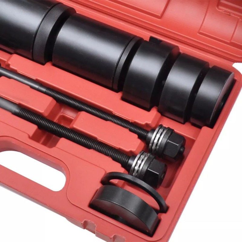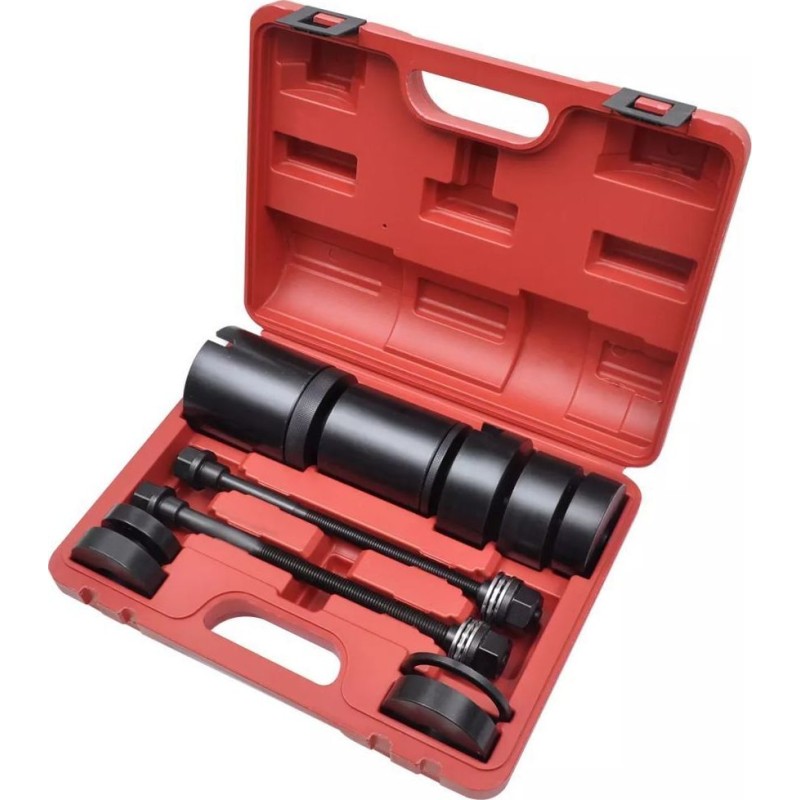 Dieser komplette Werkzeugsatz eignet sich ideal zum Aus- und Einbau von Rahmenhülsen bei BMW. Er kann verwendet werden, ohne dass die Hinterachse ausgebaut werden muss.