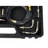 Der GEKO-Einspritzdruckprüfer ist mit einem langen, flexiblen Schlauch mit Entlüftungsventil ausgestattet, was für Sicherheit bei den Messungen sorgt. Dies ermöglicht ein bequemes Manövrieren und den Zugang zu schwer erreichbaren Stellen im Kraftstoffsystem.