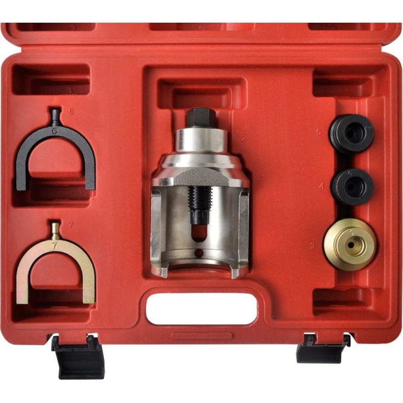 Der Abzieher/Einbauer für Gleichlaufgelenke ist ein Werkzeug aus hochwertigem Kohlenstoffstahl. Es handelt sich um ein grundlegendes Set für Mechaniker, das speziell für die Vorderachse des VW T4 entwickelt wurde. Es dient zum Aus- und Einbau von Gleichlaufgelenken in Fahrzeugen, wobei der Rahmen beim Einbau nicht demontiert werden muss.