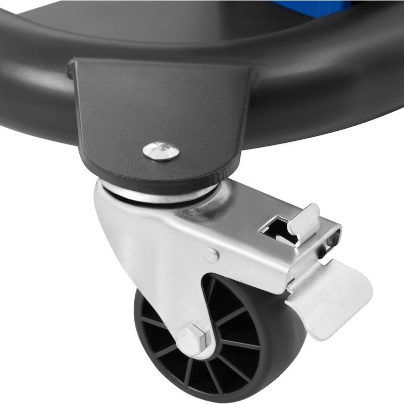 • - Rollen mit Bremsen erleichtern den Transport.