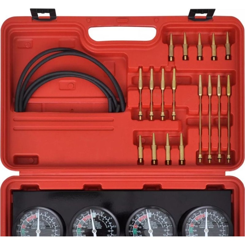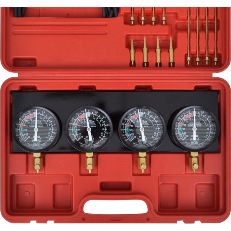 Mit diesem Set lassen sich 4 Vergaser synchronisieren sowie deren Einstellungen ändern oder anpassen. Jeder Regler verfügt über eine eigene Dämpfungseinstellung und Kalibrierungssteuerung.